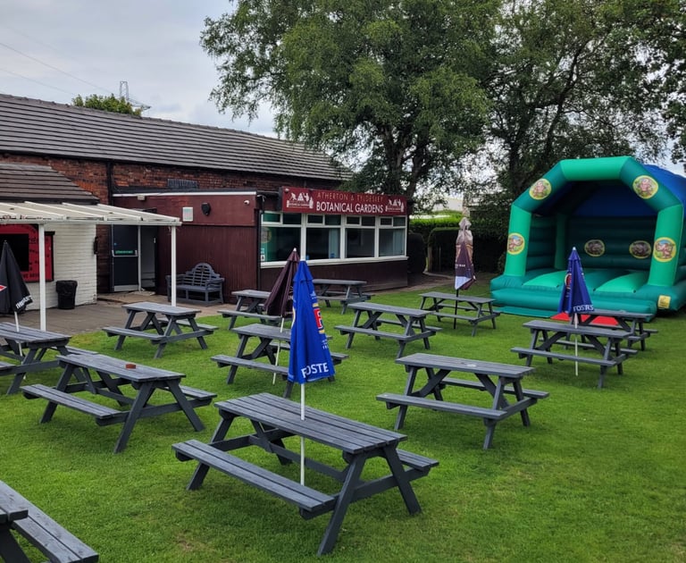 Our spacious beer garden is perfect for sunny afternoons, complete with a bouncy castle for added fun.